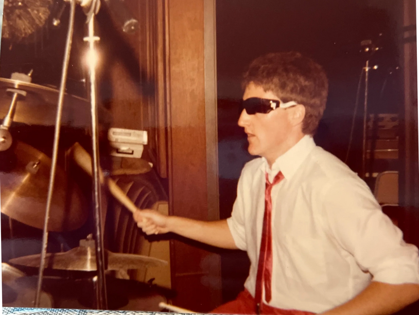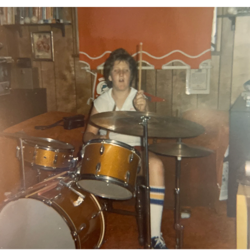 That same year, aged 9, he began to take piano lessons, but didn't keep up with practice and it was soon noted by his teacher that he wasn't interested in classical music, so he started learning popular music and chord theory. But, what he really wanted to play was the drums. He heard 'Wipeout' by The Surfaris and that was it for him. Always wanting to play, but without a kit, my Dad would play with his hands wherever and whenever he could. A glorious and momentous moment of his life came when he was on a trip to see family friends, their son had a kit, and my Dad played drums for the first time when he was 10; I can only imagine the way he lit up. "I didn't know what I was doing but I remember it was like the coolest thing ever".