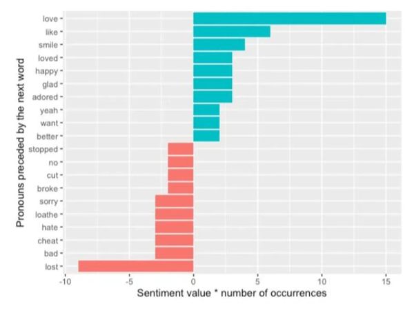 In a study done at Northeastern University 64 songs from the Billboard Hot 100 over thirty years were analyzed for differences in lyrical content in a breakup song based on gender. While male singers tend to use more negative words and curse words to describe their exes, female singers use both positive and negative words equally.